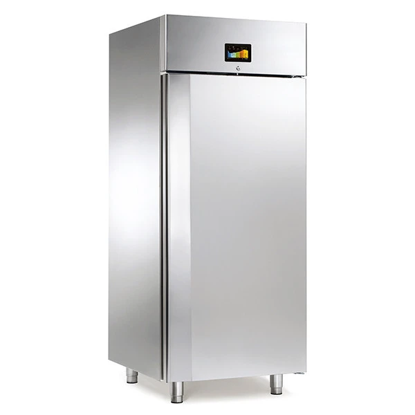 PRODOTTO TOTALMENTE ITALIANO – Armadio fermabiga con struttura interna ed esterna in acciaio inox AISI 304 con spigoli interni arrotondati e fondo stampato. Lo spessore di isolamento in poliuretano ad alta densità è di 6 cm. Gruppo incorporato con refrigerazione ventilata, sbrinamento automatico ed evaporazione automatica dell’acqua di condensa. E’ dotato di pannello comandi touch screen da 5″ completo di regolazione attiva dell’umidità fino al 95%. Porta autochiudente con guarnizioni magnetiche facilmente estraibili. In dotazione di serie serratura con chiave e illuminazione interna. Viene fornito completo di 4 coppie di guide a “L” con griglie plastificate e 4 piedi regolabili. Può alloggiare fino a 8 cassette in polietilene cm.60×40 h27 acquistabili separatamente.