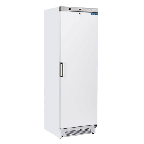 Armadio refrigerato bianco con interno termoformato in ABS. Refrigerazione roll-bond con ventilatore di assistenza e sbrinamento manuale. E’ dotato di termostato meccanico e termometro digitale per il controllo della temperatura. Lo spessore di isolamento della schiumatura in ciclopentano è di 5 cm per lato. La porta è dotata di guarnizione estraibile, serratura di serie e maniglia esterna in alluminio. Equipaggiato con luce LED interna. In dotazione 2 piedini anteriori regolabili e due ruote posteriori. INCLUSI 5 ripiani regolabili.