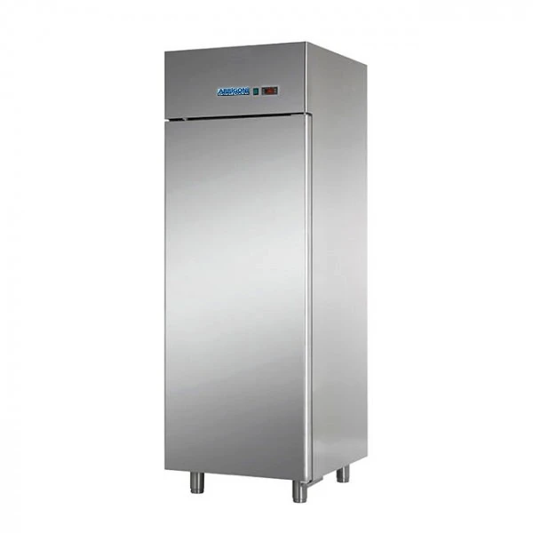 INTERAMENTE COSTRUITO IN ITALIA e perfettamente rispondente alle normative HACCP ed Europee. Armadio refrigerato GN2/1 con struttura in acciaio inox e refrigerazione ventilata con sbrinamento automatico. Gruppo incorporato a monoblocco estraibile e tropicalizzato di serie fino a 40° C ambiente e 60% di umidità. Lo spessore di isolamento in poliuretano ad alta pressione è di 6 cm. Grazie al pannello di controllo frontale è possibile regolare la temperatura della camera. L’acqua di condensa viene raccolta e fatta evaporare automaticamente. La porta reversibile è dotata di chiusura automatica con guarnizione magnetica facilmente asportabile la quale, insieme all’interno con angoli arrotondati, facilità la pulizia. A differenza di altri modelli internamente non sono presenti scanalature o guide, ma una volta rimosse le griglie e i ganci che le sostengono, rimane solo la parete liscia estremamente veloce da pulire. Piedini regolabili. In dotazione standard 3 kit di ganci e 3 griglie plastificate GN2/1 (cm. 65×53) per anta.