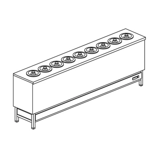 Banco pozzetti carapine hanno una struttura portante con tubolari d’acciaio verniciato. E’ dotato di refrigerazione data dalla serpentina in rame con unità condensatrice ermetica incorporata. La vasca è realizzata in acciaio inox 18/10 AISI 304 finitura scotschbrite isolato con poliuretano espanso ecologico iniettato monoblocco con densità 40 kg/m3. Il quadro elettrico è dotato di termostato elettronico digitale e interruttori spia luminosi. Il piano di lavoro è in acciaio inox 18/10 AISI 304 finitura scotchbrite. Il banco standard viene fornito con il top liscio e carapine acquistabili separatamente. In dotazione coperchi per carapine. Nella fornitura seriale del banco statico con sorbettiere tonde non è presente il troppo pieno, perchè lavora senza glicole.