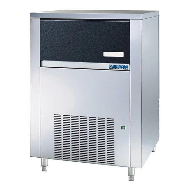 Produttore di ghiaccio a cubetti pieni di gr. 18. Interno ed esterno realizzato in acciaio inox AISI 304 con quattro piedi regolabili da 11-15 cm. Disponibile con raffreddamento ad aria o ad acqua con ambiente tropicalizzato +43°. E’ dotato di filtro pulibile e trattato anti calcare. Interruttore generale posto separatamente sulla parte anteriore. Superfici interne arrotondate per facilitarne la pulizia. E’ presente un contenitore di raccolta di capacità Kg. 65 (3650 cubetti) e soddisfa una produzione giornaliera di Kg. 130 di ghiaccio. Disponibili su richiesta versioni con grammatura cubetti di gr. 13, gr. 33, gr. 42 e gr. 60.