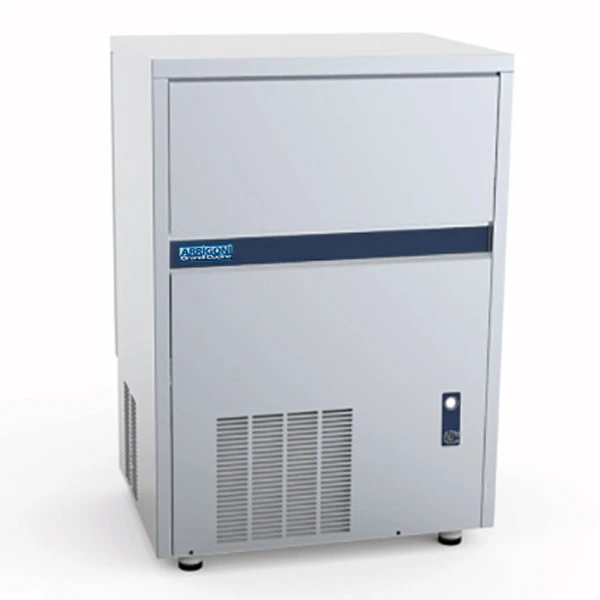 PRODOTTO TOTALMENTE ITALIANO – Produttore di ghiaccio a cubetti pieni di gr. 18. Interno ed esterno realizzato in acciaio inox. Disponibile con raffreddamento ad aria o ad acqua con ambiente tropicalizzato +43°. E’ dotato di filtro pulibile e trattato anti calcare. Interruttore generale posto separatamente sulla parte anteriore. Superfici interne arrotondate per facilitarne la pulizia. Soddisfa una produzione giornaliera di Kg. 130 di ghiaccio.