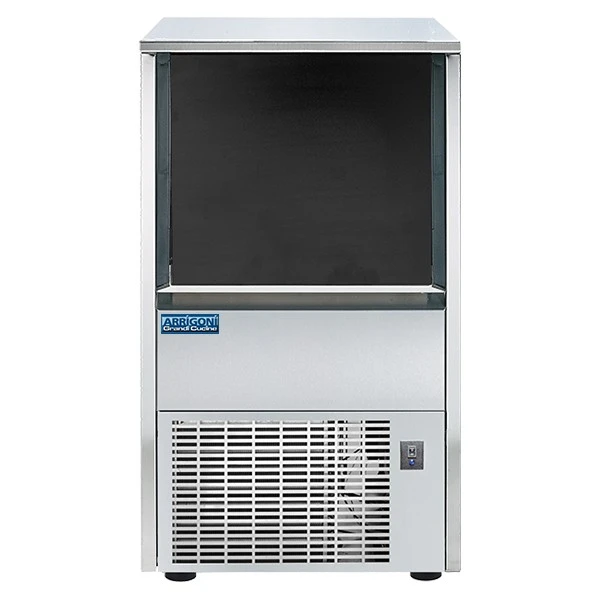 Produttore di ghiaccio a cubetti cavi di gr. 20. Interno ed esterno realizzato in acciaio inox AISI 304. Disponibile con raffreddamento ad aria o ad acqua. Cubetti di ghiaccio di grande volume e dimensioni simili a quelle di un dito per un raffreddamento efficiente con il massimo trasferimento di calore nelle temperature ambiente più calde. E’ dotato di sistema a palette che assicura, grazie al movimento dell’acqua, un congelamento ottimale. La macchina a palette è dotata di un controllo completamente elettromeccanico che la rende estremamente affidabile, senza getti o iniettori alimentati da una pompa. Interruttore generale posto separatamente sulla parte anteriore. Superfici interne arrotondate per facilitarne la pulizia. E’ presente un contenitore di raccolta di capacità Kg. 12 (600 cubetti) e soddisfa una produzione giornaliera di Kg. 43 di ghiaccio. In dotazione quattro piedini da 1,2-2 cm.