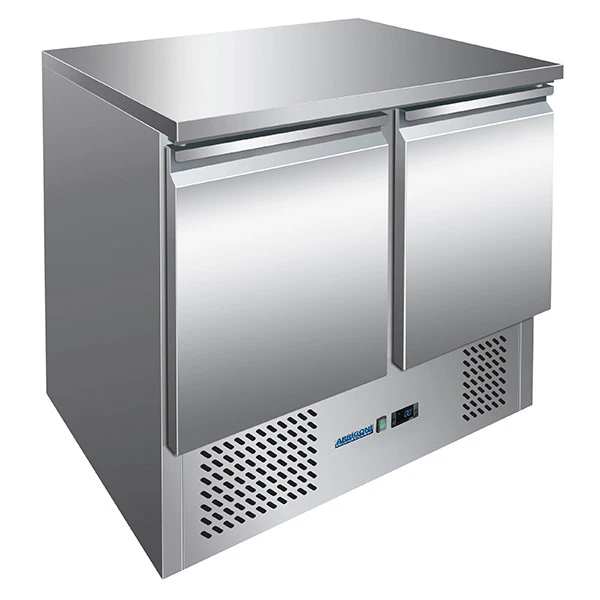 Saladette refrigerata con struttura realizzata in acciaio inox AISI 304. E’ dotata di refrigerazione statica con sbrinamento automatico, evaporatore statico con la schiumatura su tre lati, la ventola ha la capacità di uniformare la temperatura al suo interno. Il termostato digitale permette un facile controllo della temperatura. L’interno ha angoli arrotondati per facilitarne la pulizia. Lo spessore di isolamento è di 4 cm. Piano TOP in acciaio inox. In dotazione di serie 2 griglie GN 1/1 e 2 coppie di guide.