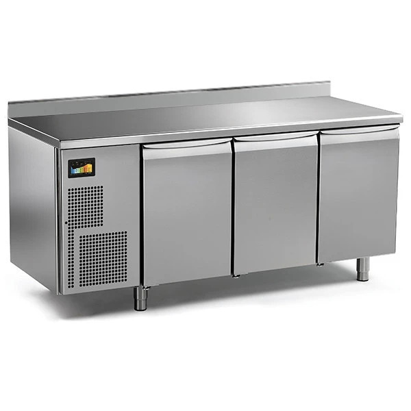 PRODOTTO TOTALMENTE ITALIANO – Tavolo fermabiga con struttura interna ed esterna in acciaio inox AISI 304 con spigoli interni arrotondati e fondo stampato. Lo spessore di isolamento in poliuretano ad alta densità è di 5 cm. Gruppo incorporato con refrigerazione ventilata, sbrinamento automatico ed evaporazione automatica dell’acqua di condensa. E’ dotato di pannello comandi touch screen da 5″. Porte autochiudenti con guarnizioni magnetiche facilmente estraibili. Viene fornito completo di 1 griglia 60×40 con 1 coppia di guide per ciascuna porta e 4 piedi regolabili. Può alloggiare fino a 6 cassette in polietilene cm.60×40 h27 acquistabili separatamente. Alzatina posteriore di 10 cm.