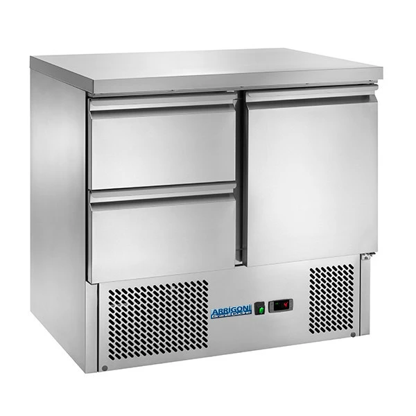 Saladette refrigerata con struttura realizzata in acciaio inox. Motore tropicalizzato, lavora fino a temperature di 33°C ambiente e 60% di umidità. E’ dotata di refrigerazione statica con sbrinamento automatico. Il termostato digitale permette un facile controllo della temperatura. Lo spessore di isolamento è di 3,5 cm. Cassettiera con dimensioni interne cm. 30×52,5. In dotazione 1 griglia GN1/1 ed una coppia di guide per porta.
