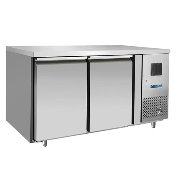 FULL OPTIONAL TOP AISI 304 – Tavolo refrigerato professionale di ultima generazione a basso consumo energetico e compatto ambientale. Tropicalizzato lavora fino a temperature di 43°C ambiente e 85% di umidità. Dotato di compressore “Embraco” e termostato digitale “Carel/Dixell”. Sbrinamento automatico con gruppo ventola “EBM”. Le porte autochiudenti con bloccaggio verso l’esterno hanno guarnizioni a incastro facili da smontare. L’interno ha angoli arrotondati per facilitarne la pulizia. In dotazione due griglie GN1/1 per porta con relative guide e ripiani di collegamento intermedi per creare un’unica superficie di appoggio interna. Disponibili varie configurazioni con cassetti GN1/1 al posto delle porte (vedi accessori).
