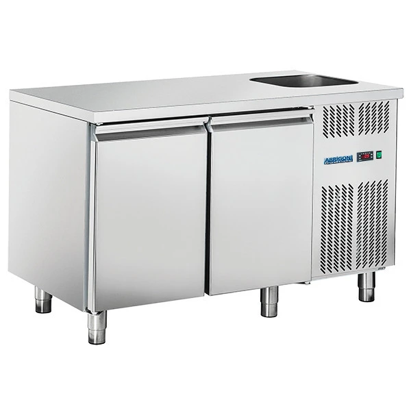 Tavolo refrigerato professionale GN1/1 con lavello costruito interamente in acciaio inox. Refrigerazione ventilata con sbrinamento automatico ad arresto compressore. Lo spessore di isolamento è di 4 cm. E’ dotato di termostato digitale per il controllo della temperatura ed evaporatore trattato anti corrosione. La porta è dotata di guarnizione estraibile e profilo in PVC sulla cornice interna per una maggiore tenuta termica. In dotazione 1 ripiano regolabile GN1/1 per porta e quattro piedi in acciaio regolabili.