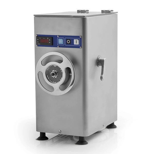 PRODOTTO TOTALMENTE ITALIANO – Tritacarne professionale refrigerato costruito in acciaio inox. Motore asincrono ventilato con motoriduttore a bagno d’olio, trasmissione a ingranaggi e termica di protezione. E’ dotato di gruppo di macinazione carne in acciaio inox di serie. Viene fornito con tramoggia refrigerata temperatura -2/+4°C regolabile tramite termostato.