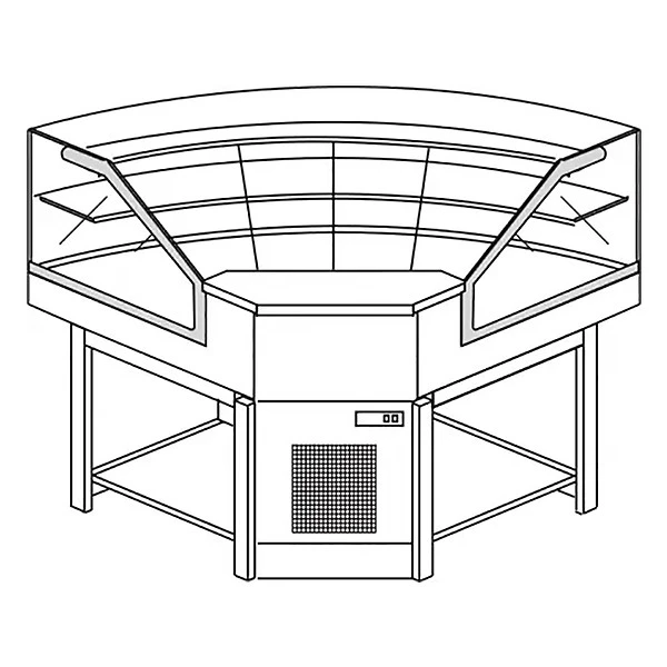 Vetrina refrigerata pronta per l’allestimento frontale, costruita con struttura portante in robusto tubolare verniciato, struttura interna in lamiera zincoplastificata. Refrigerazione statica composta da evaporatore alettato connesso con unità condensatrice incorporata. Il pianale espositivo è realizzato in acciaio inox AISI 304 18/10 ed isolato con poliuretano espanso ecologico iniettato monoblocco con densità 40 kg/m3. Il piano di lavoro posteriore è fornito al grezzo ma è possibile, come optional, richiederlo in acciaio inox. Quadro elettrico dotato di termostato elettronico con sbrinamento a tempo. Piano alimenti dotato di angoli arrotondati per facilitarne la pulizia. Il vetro frontale temperato è fisso, il celino superiore e i fianchi sono in vetro temperato e vengono chiusi con scorrevoli in plexiglass ed è completo di plafoniera. La pulizia dei vetri deve avvenire con un panno morbido e un detergente specifico per superfici vetrate mentre le parti in acciaio vanno lavate con acqua ed un detergente neutro antibatterico: non utilizzare mai prodotti aggressivi quali acidi di vario tipo, cloro, ammoniaca, candeggina, spugne abrasive, carta vetrata. La vetrina contiene gas refrigerante per cui andrà smaltita in discariche autorizzate.